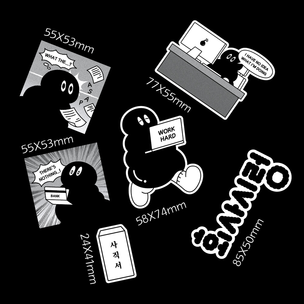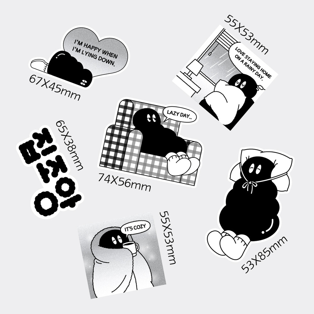 물렁이의 생활을 엿볼 수 있는 6종의 스티커 세트입니다.